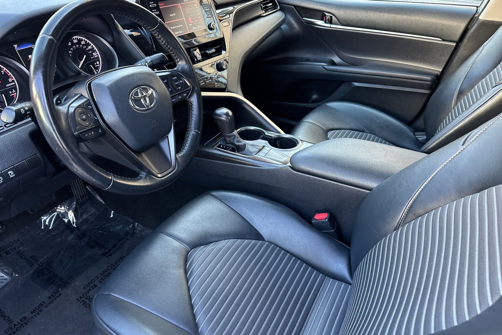 LAST CHANCE PRICE!!!28/39 City/Highway MPG Priced below KBB Fair Purchase Price! CARFAX One-Owner. Clean CARFAX.Black w/Fabric Seat Trim. Black w/Fabric Seat Trim, 4-Wheel Disc Brakes, 6 Speakers, ABS brakes, Air Conditioning, Alloy wheels, AM/FM radio: SiriusXM, Apple CarPlay/Android Auto, Auto High-beam Headlights, Automatic temperature control, Brake assist, Bumpers: body-color, Delay-off headlights, Driver door bin, Driver vanity mirror, Dual front impact airbags, Dual front side impact airbags, Electronic Stability Control, Emergency communication system: Safety Connect with 1-year trial, Exterior Parking Camera Rear, Fabric Seat Trim w/Sport SofTex, Four wheel independent suspension, Front anti-roll bar, Front Bucket Seats, Front Center Armrest, Front dual zone A/C, Front reading lights, Fully automatic headlights, Heated door mirrors, Illuminated entry, Knee airbag, Low tire pressure warning, Occupant sensing airbag, Outside temperature display, Overhead airbag, Overhead console, Panic alarm, Passenger door bin, Passenger vanity mirror, Power door mirrors, Power driver seat, Power steering, Power windows, Radio data system, Radio: AM/FM Audio System, Rear anti-roll bar, Rear seat center armrest, Rear side impact airbag, Rear window defroster, Remote keyless entry, Security system, Speed control, Speed-sensing steering, Split folding rear seat, Spoiler, Steering wheel mounted audio controls, Tachometer, Telescoping steering wheel, Tilt steering wheel, Traction control, Trip computer, Turn signal indicator mirrors, Variably intermittent wipers, and Wheels: 8.0J x 18" Black Machined-Finish Alloy.2022 Toyota Camry SE SE