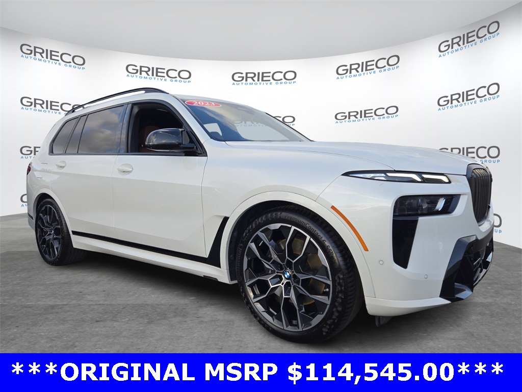 Introducing the 2023 BMW X7 M 60i, SN: RV0026. This vehicle features a 4.4L V8 DOHC 32V engine and a 8-Speed Automatic Sport transmission. Exterior color: White. Interior: Tartufo. Mileage: 8696. Price: $86828. VIN: 5UX33EM01P9N65485. Enjoy premium comfort, excellent performance, and trusted reliability. Don't miss this deal — come test drive today!
