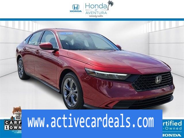Negro con tapizado de asiento de tela. Honda of Aventura se enorgullece de presentarle otro vehículo usado con precio real del mercado. Este Honda Accord EX HondaTrue Certified 2023 viene equipado con las siguientes opciones de fábrica: Negro con tapizado de asiento de tela Certificado HondaTrue Certified, Negro con tapizado de asiento de tela, Frenos de disco en las 4 ruedas, 8 parlantes, frenos ABS, Control de crucero adaptativo: Control de crucero adaptativo (ACC) con seguimiento de baja velocidad, aire acondicionado, llantas de aleación, radio AM/FM, Apple CarPlay/Android Auto, faros de luz alta automáticos, espejo retrovisor con atenuación automática, Control automático de temperatura, asistente de frenado, parachoques: del color de la carrocería, brújula, faros con retardo de apagado, compartimiento de la puerta del conductor, espejo de tocador para el conductor, bolsas de aire dobles para impactos frontales, bolsas de aire dobles para impactos laterales delanteros, control electrónico de estabilidad, sistema de comunicación de emergencia: HondaLink Assist, cámara de estacionamiento exterior trasera, tapizado de tela para los asientos, suspensión independiente en las cuatro ruedas, barra estabilizadora delantera, asientos delanteros individuales individuales, apoyabrazos central delantero, aire acondicionado de doble zona delantero, luces de lectura delanteras, faros completamente automáticos, espejos exteriores con calefacción, asientos delanteros individuales con calefacción, asientos delanteros con calefacción, Entrada iluminada, Bolsa de aire para las rodillas, Salida de carril: Sistema de asistencia para mantenerse en el carril (LKAS) activo, Advertencia de baja presión de neumáticos, Bolsa de aire con detección de ocupantes, Pantalla de temperatura exterior, Bolsa de aire en el techo, Consola en el techo, Alarma de pánico, Compartimento en la puerta del pasajero, Espejo de tocador para el pasajero, Espejos exteriores eléctricos, Asiento del conductor eléctrico, Techo corredizo eléctrico, Dirección asistida, Ventanas eléctricas, Sistema de datos de radio, Radio: Sistema de audio AM/FM de 180 vatios, Barra estabilizadora trasera, Luces de lectura traseras, Apoyabrazos central del asiento trasero, Parte trasera Bolsa de aire contra impactos, desempañador de ventana trasera, entrada remota sin llave, sistema de seguridad, control de velocidad, dirección con sensor de velocidad, limpiaparabrisas sensibles a la velocidad, asiento trasero plegable dividido, controles de audio montados en el volante, tacómetro, volante telescópico, volante inclinable, control de tracción, computadora de viaje, limpiaparabrisas con intermitencia variable y ruedas: 17 x 7,5 gris peltre!! CARFAX de un solo propietario. Certificado. Detalles de la certificación HondaTrue: * Garantía limitada del tren motriz: 84 meses/100,000 millas (lo que ocurra primero) desde la fecha de entrada en servicio original * Garantía transferible * Deducible de la garantía: $0 * Vehículos comprados dentro del período de garantía limitada de vehículos nuevos: extiende la garantía limitada de vehículos nuevos a 5 años*/60,000 millas*. Socio de Honda Care Motor Club por 1 año/12,000 millas. Hasta dos cambios de aceite gratuitos durante el primer año de propiedad. Prueba de 90 días de SiriusXM. * Inspección de 182 puntos * Asistencia en la carretera * Garantía limitada: 24 meses/100,000 millas (lo que ocurra primero) después de que expire la garantía del auto nuevo o desde la fecha de compra certificada * Historial del vehículoOtra forma en que Honda of Aventura cuida a sus clientes es a través de nuestro programa de luz verde. Independientemente de si tiene un historial crediticio de quiebra, mal crédito o ejecuciones hipotecarias, e incluso si simplemente es un comprador por primera vez y tiene un historial crediticio limitado, nuestro departamento de finanzas puede ayudarle fácilmente a obtener un préstamo. Y cuando venga a recibir servicio, le prometemos que entrará, saldrá y regresará a la carretera de manera rápida y eficiente gracias a nuestra garantía de precio: su cambio de aceite se completará en 45 minutos, ¡o corre por nuestra cuenta! Simplemente venga hoy a Honda of Aventura para comenzar un proceso de compra de automóvil rápido y sencillo. Nuestro concesionario está ubicado en 2150 NE 163rd Street en North Miami Beach, FL, ¡y puede comunicarse con nuestro equipo de ventas si tiene alguna pregunta!