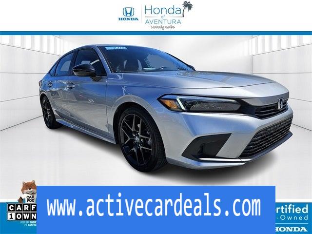 Negro con tapizado de asiento de tela. Honda of Aventura se enorgullece de presentarle otro vehículo usado con precio real del mercado. Este Honda Civic Sport HondaTrue Certified 2023 viene cargado con las siguientes opciones de fábrica: Negro con tapizado de asiento de tela Certificado HondaTrue Certified, negro con tapizado de asiento de tela, frenos de disco en las 4 ruedas, 8 parlantes, frenos ABS, control de crucero adaptativo: Control de crucero adaptativo (ACC) con seguimiento de baja velocidad, aire acondicionado, llantas de aleación, radio AM/FM, Apple CarPlay/Android Auto, faros delanteros de luces altas automáticos, control automático de temperatura, asistencia de frenado, parachoques: del color de la carrocería, tapizado de asientos de tela, faros con retardo de apagado, compartimento en la puerta del conductor, espejo de tocador para el conductor, bolsas de aire dobles para impactos frontales, bolsas de aire dobles para impactos laterales delanteros, control electrónico de estabilidad, sistema de comunicación de emergencia: HondaLink, cámara de estacionamiento exterior trasera, suspensión independiente en las cuatro ruedas, barra estabilizadora delantera, asientos delanteros individuales, apoyabrazos central delantero, luces de lectura delanteras, faros completamente automáticos, entrada iluminada, bolsa de aire para rodillas, perilla de cambios de cuero, volante de cuero, advertencia de baja presión de llantas, bolsa de aire con detección de ocupantes, indicador de temperatura exterior, techo bolsa de aire, alarma de pánico, compartimiento de la puerta del pasajero, espejo de tocador del pasajero, espejos exteriores eléctricos, dirección asistida, ventanas eléctricas, sistema de datos de radio, radio: sistema de audio de 180 vatios con 8 parlantes, barra estabilizadora trasera, bolsa de aire de impacto lateral trasera, desempañador de ventana trasera, entrada remota sin llave, sistema de seguridad, control de velocidad, dirección con sensor de velocidad, controles de audio montados en el volante, tacómetro, volante telescópico, volante inclinable, control de tracción, computadora de viaje y Ruedas: 18 Brillo ¡Aleación negra! CARFAX Un solo propietario. Limpio CARFAX. Certificado. Detalles de la certificación HondaTrue: * Inspección de 182 puntos * Deducible de la garantía: $0 * Asistencia en carretera * Garantía transferible * Garantía limitada: 24 meses/100,000 millas (lo que ocurra primero) después de que expire la garantía del auto nuevo o desde la fecha de compra certificada * Historial del vehículo * Garantía limitada del tren motriz: 84 meses/100,000 millas (lo que ocurra primero) desde la fecha original de servicio * Vehículos comprados dentro del período de garantía limitada de vehículos nuevos: extiende la garantía limitada de vehículos nuevos a 5 años*/60,000 millas*. Asistencia en carretera Honda Care por 2 años/100,000 millas (lo que ocurra primero). Hasta dos cambios de aceite gratuitos durante el primer año de propiedad. Prueba de 90 días de SiriusXM. Otra forma en que Honda of Aventura cuida de sus clientes es a través de nuestro programa de luz verde. Independientemente de si tiene un historial crediticio de quiebra, mal crédito o ejecuciones hipotecarias, e incluso si simplemente es un comprador por primera vez y tiene un historial crediticio limitado, nuestro departamento de finanzas puede ayudarle fácilmente a obtener un préstamo. Y cuando venga a recibir servicio, le prometemos que entrará, saldrá y regresará a la carretera de manera rápida y eficiente gracias a nuestra garantía de precio: su cambio de aceite se completará en 45 minutos, ¡o corre por nuestra cuenta! Simplemente venga hoy a Honda of Aventura para comenzar un proceso de compra de automóvil rápido y sencillo. Nuestro concesionario está ubicado en 2150 NE 163rd Street en North Miami Beach, FL, ¡y puede comunicarse con nuestro equipo de ventas si tiene alguna pregunta!