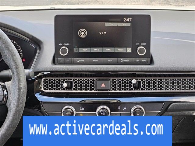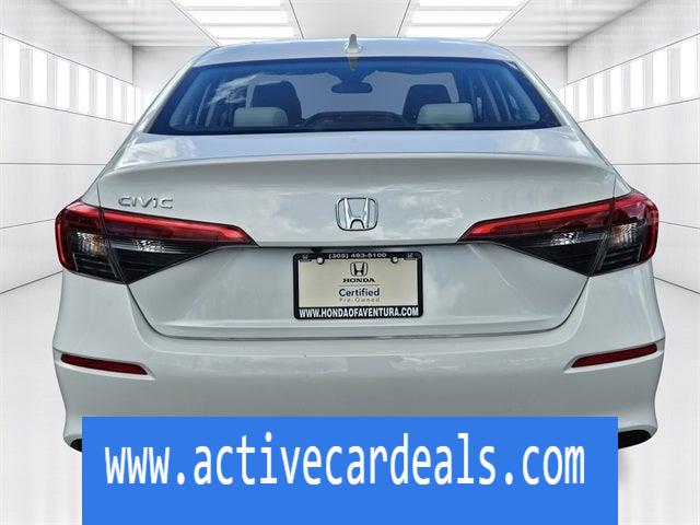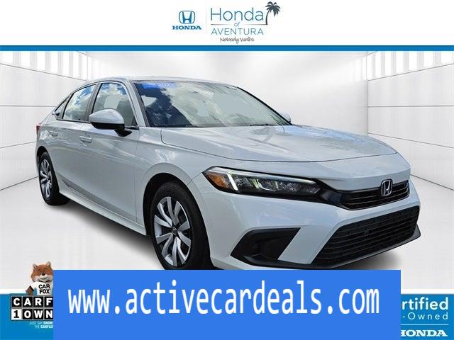 Black w/Cloth Seat Trim.Honda of Aventura is proud to present you with another True Market Priced Pre-Owned Vehicle. This 2023 Honda Civic LX LOW MILES/ CERTIFIED HondaTrue Certified is loaded with the following Factory Options: Black w/Cloth Seat Trim HondaTrue Certified Certified, Black w/Cloth Seat Trim, 16 Wheels w/Full Covers, 4 Speakers, 4-Wheel Disc Brakes, ABS brakes, Adaptive Cruise Control: Adaptive Cruise Control (ACC) with Low-Speed Follow, Air Conditioning, AM/FM radio, Apple CarPlay/Android Auto, Auto High-beam Headlights, Automatic temperature control, Brake assist, Bumpers: body-color, Cloth Seat Trim, Delay-off headlights, Driver door bin, Driver vanity mirror, Dual front impact airbags, Dual front side impact airbags, Electronic Stability Control, Emergency communication system: HondaLink, Exterior Parking Camera Rear, Four wheel independent suspension, Front anti-roll bar, Front Bucket Seats, Front Center Armrest, Front reading lights, Fully automatic headlights, Illuminated entry, Knee airbag, Low tire pressure warning, Occupant sensing airbag, Outside temperature display, Overhead airbag, Panic alarm, Passenger door bin, Passenger vanity mirror, Power door mirrors, Power steering, Power windows, Radio data system, Radio: 160-Watt Audio System w/4 Speakers, Rear anti-roll bar, Rear side impact airbag, Rear window defroster, Remote keyless entry, Security system, Speed control, Speed-sensing steering, Steering wheel mounted audio controls, Tachometer, Telescoping steering wheel, Tilt steering wheel, Traction control, and Trip computer!!CARFAX One-Owner. Clean CARFAX.Certified. HondaTrue Certified Details: * Transferable Warranty * Vehicle History * Powertrain Limited Warranty: 84 Month/100,000 Mile (whichever comes first) from original in-service date * Limited Warranty: 24 Month/100,000 Mile (whichever comes first) after new car warranty expires or from certified purchase date * Vehicles purchased within New Vehicle Limited Warranty period: extends New Vehicle Limited Warranty to 5 years*/60,000 miles*. Honda Care Motor Club Partner for 1 year/12,000 miles. Up to two complimentary oil changes within the first year of ownership. SiriusXM 90-Day Trial. * Warranty Deductible: $0 * 182 Point Inspection * Roadside AssistanceAnother way Honda of Aventura takes care of its customers is through our green light program. Regardless of whether you have a credit history with bankruptcy, poor credit, or foreclosures, and even if you’re simply a first-time buyer and have limited credit history, our finance department can easily get you set up with a loan. And when you come in for service, we promise to get you in, out, and back on the road quickly and efficiently thanks to our price guarantee—your oil change will be complete within 45 minutes, or it’s on us!Simply come to Honda of Aventura today to start a quick and straightforward car buying process. Our dealership is located at 2150 NE 163rd Street in North Miami Beach, FL, and you can contact our sales team with any questions!