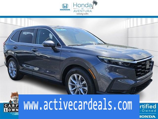 Honda of Aventura is proud to present you with another True Market Priced Pre-Owned Vehicle. This 2023 Honda CR-V EX-L HondaTrue Certified is loaded with the following Factory Options: HondaTrue Certified Certified, 4-Wheel Disc Brakes, 5.64 Axle Ratio, 8 Speakers, ABS brakes, Adaptive Cruise Control: Adaptive Cruise Control (ACC) with Low-Speed Follow, Air Conditioning, Alloy wheels, AM/FM radio: SiriusXM, Auto High-beam Headlights, Auto-dimming Rear-View mirror, Automatic temperature control, Brake assist, Bumpers: body-color, Compass, Delay-off headlights, Driver door bin, Driver vanity mirror, Dual front impact airbags, Dual front side impact airbags, Electronic Stability Control, Exterior Parking Camera Rear, Four wheel independent suspension, Front anti-roll bar, Front Bucket Seats, Front Center Armrest, Front dual zone A/C, Front reading lights, Fully automatic headlights, Heated door mirrors, Heated Front Bucket Seats, Heated front seats, Illuminated entry, Knee airbag, Leather Seat Trim, Leather Shift Knob, Leather steering wheel, Low tire pressure warning, Memory seat, Occupant sensing airbag, Outside temperature display, Overhead airbag, Overhead console, Panic alarm, Passenger door bin, Passenger vanity mirror, Power door mirrors, Power driver seat, Power Liftgate, Power moonroof, Power passenger seat, Power steering, Power windows, Radio data system, Radio: 320-Watt AM/FM/HD/SiriusXM Audio System, Rear anti-roll bar, Rear reading lights, Rear seat center armrest, Rear side impact airbag, Rear window defroster, Rear window wiper, Remote keyless entry, Security system, Speed control, Speed-sensing steering, Speed-Sensitive Wipers, Split folding rear seat, Spoiler, Steering wheel mounted audio controls, Tachometer, Telescoping steering wheel, Tilt steering wheel, Traction control, Trip computer, Turn signal indicator mirrors, Variably intermittent wipers, Wheels: 18 Sparkle Silver Metallic, and Wireless Apple CarPlay/Wireless Android Auto!!CARFAX One-Owner. Clean CARFAX.Certified. HondaTrue Certified Details: * Roadside Assistance * Warranty Deductible: $0 * Powertrain Limited Warranty: 84 Month/100,000 Mile (whichever comes first) from original in-service date * Limited Warranty: 24 Month/100,000 Mile (whichever comes first) after new car warranty expires or from certified purchase date * Vehicle History * 182 Point Inspection * Vehicles purchased within New Vehicle Limited Warranty period: extends New Vehicle Limited Warranty to 5 years*/60,000 miles*. Honda Care Roadside Assistance for 2 year/100,000 miles (whichever occurs first). Up to two complimentary oil changes within the first year of ownership. SiriusXM 90-Day Trial. * Transferable WarrantyAnother way Honda of Aventura takes care of its customers is through our green light program. Regardless of whether you have a credit history with bankruptcy, poor credit, or foreclosures, and even if you’re simply a first-time buyer and have limited credit history, our finance department can easily get you set up with a loan. And when you come in for service, we promise to get you in, out, and back on the road quickly and efficiently thanks to our price guarantee—your oil change will be complete within 45 minutes, or it’s on us!Simply come to Honda of Aventura today to start a quick and straightforward car buying process. Our dealership is located at 2150 NE 163rd Street in North Miami Beach, FL, and you can contact our sales team with any questions!